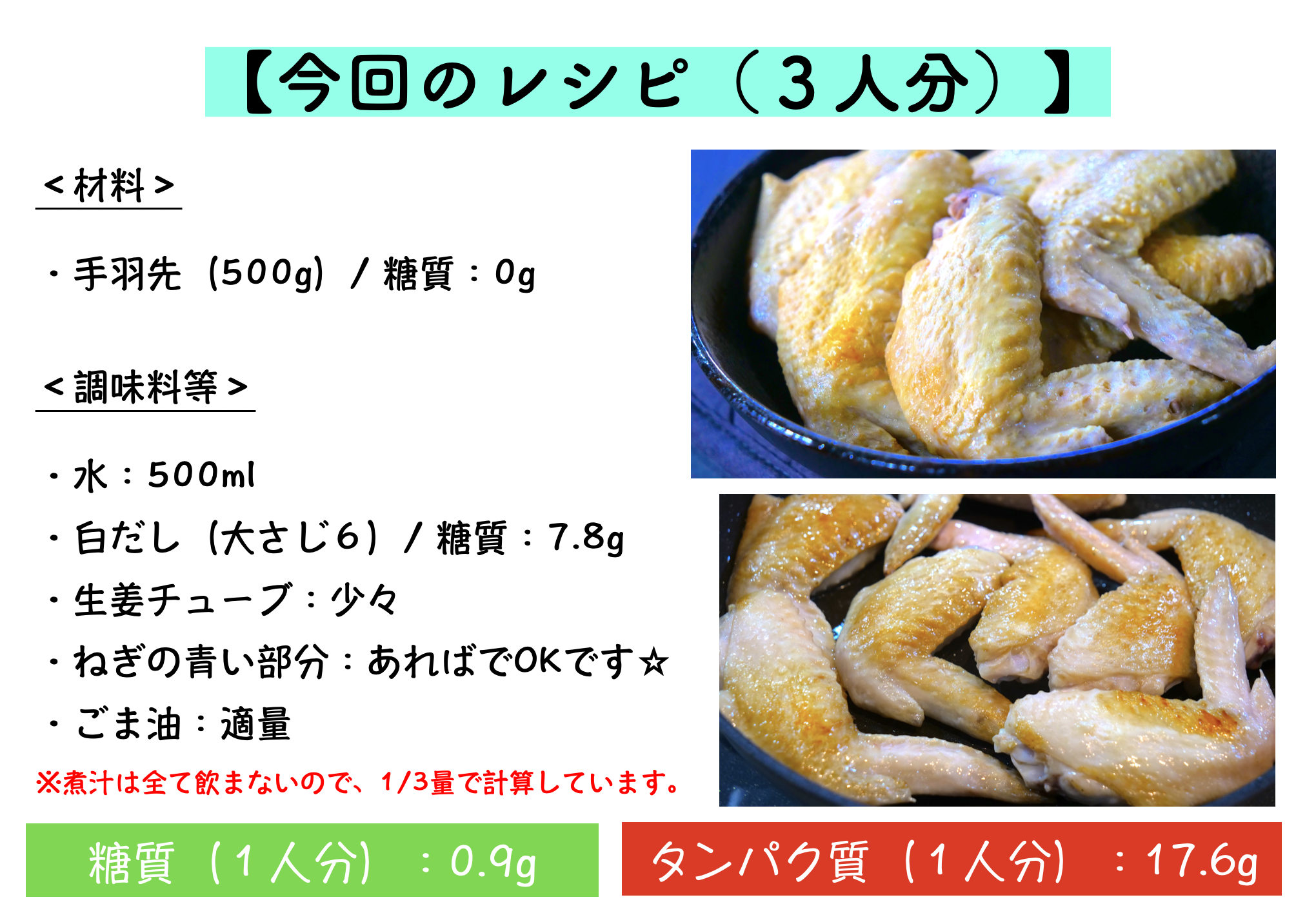 さて、今回紹介するロカボ飯は、「手羽先の白だし煮」です。