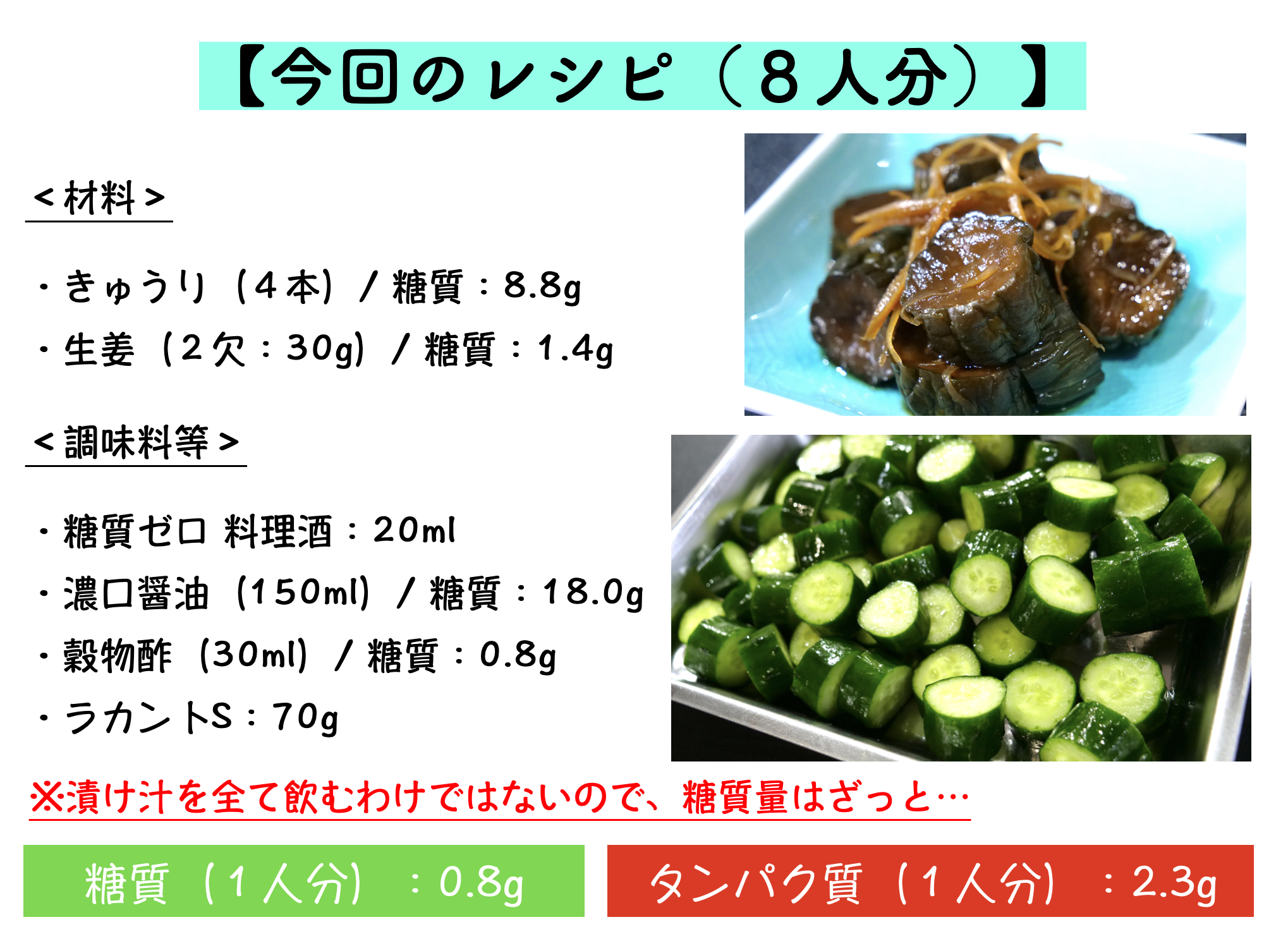 ※漬け汁を全て飲むわけではないので、糖質量はざっと…