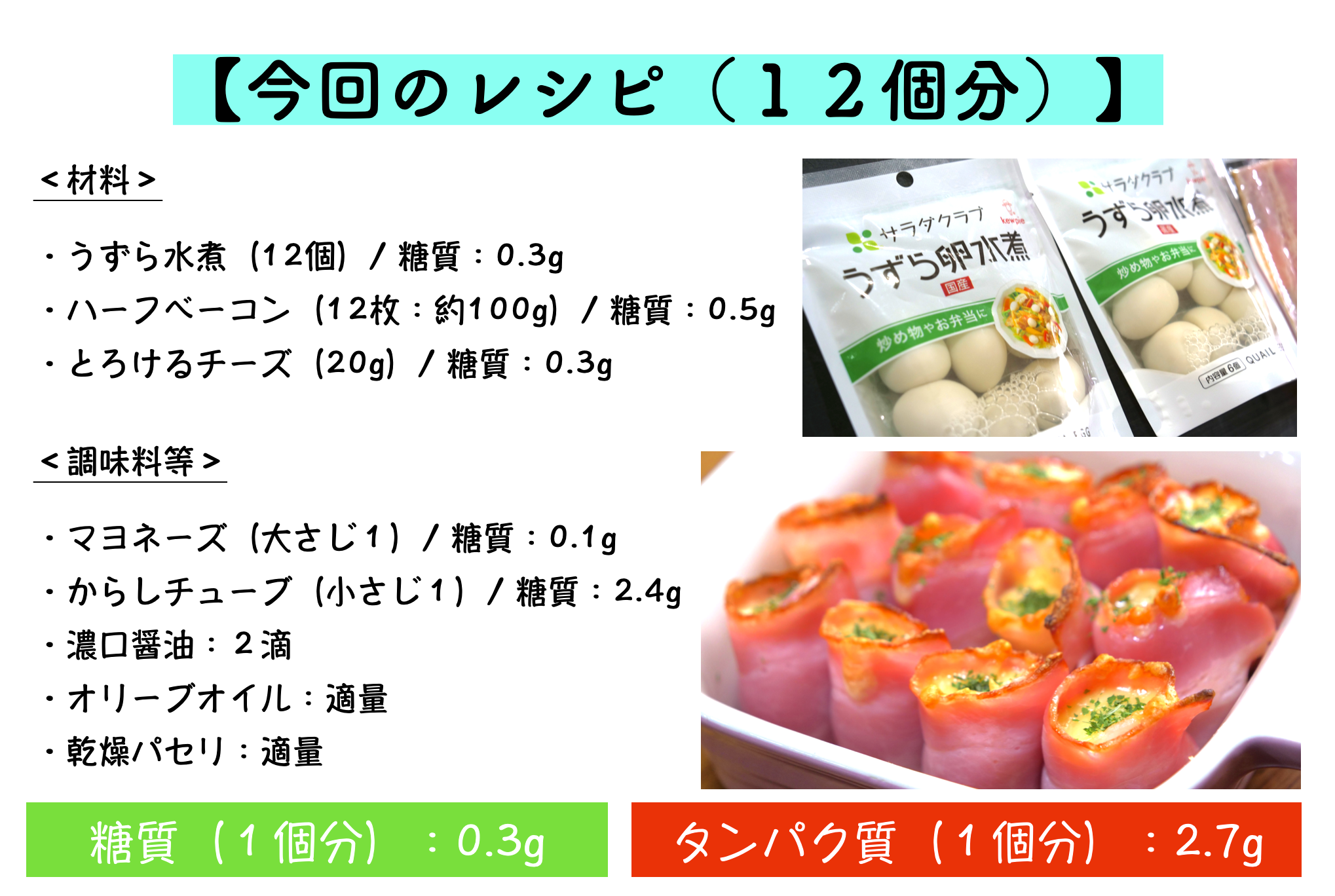 さて、今回紹介するロカボ飯は、「うずらのベーコンチーズ」です。