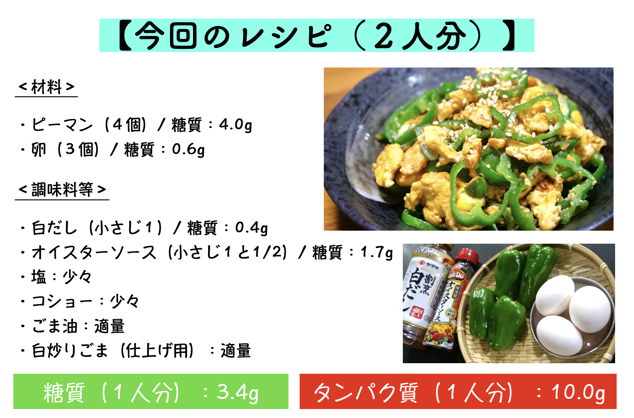 さて、今回紹介するロカボ飯は、「ピーマンと卵のオイスター炒め」です。