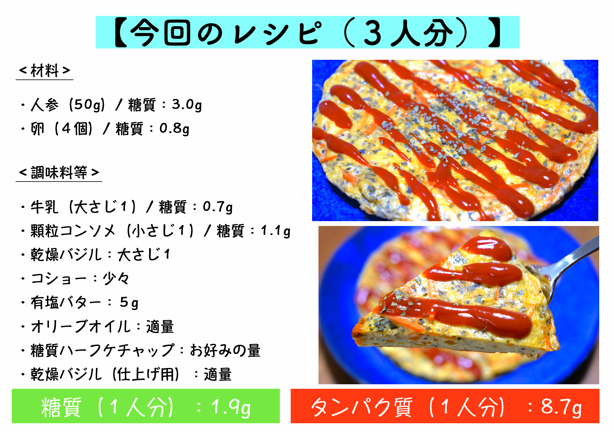 - 糖質ハーフケチャップ:お好みの量